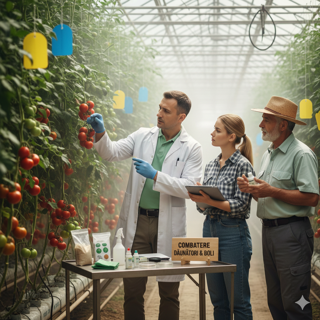 Solarul (sau sera) oferă un mediu ideal pentru creșterea intensivă a legumelor (roșii, castraveți, ardei, vinete), dar creează și un mediu perfect pentru dezvoltarea rapidă a dăunătorilor și bolilor. Temperatura și umiditatea ridicate, alături de lipsa ventilației naturale, favorizează explozia populațiilor de dăunători (Musculița Albă, Acarieni, Trips) și apariția rapidă a bolilor (Făinare, Mana, Botrytis). Combaterea dăunătorilor la legumele de solar necesită o strategie mult mai riguroasă și mai inteligentă decât cea aplicată în câmp, cu accent pe soluții sigure și un timp de pauză scurt, având în vedere ritmul constant de recoltare.